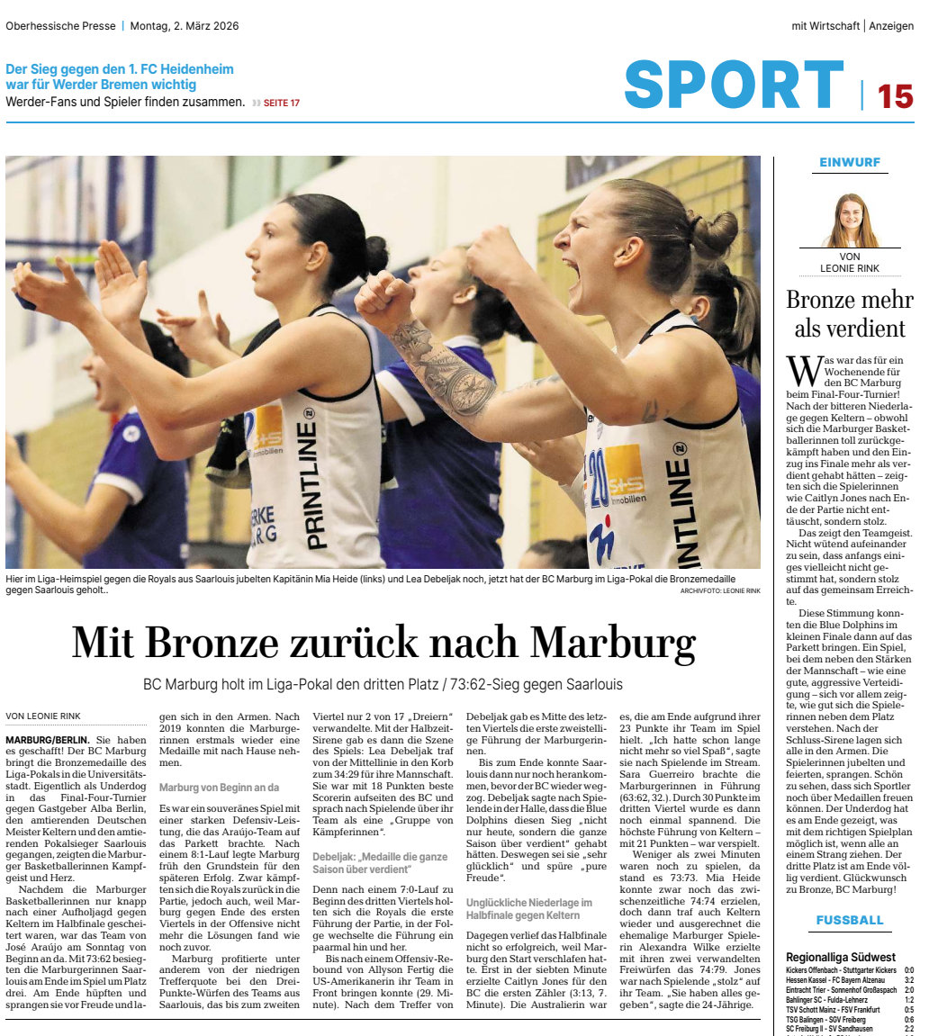 Orthozema gratuliert dem BC Marburg zum 3. Platz im Pokal in Berlin.